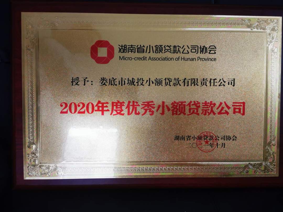 喜訊,婁底城投小貸公司獲得2020年度“湖南省優(yōu)秀小貸公司”稱號